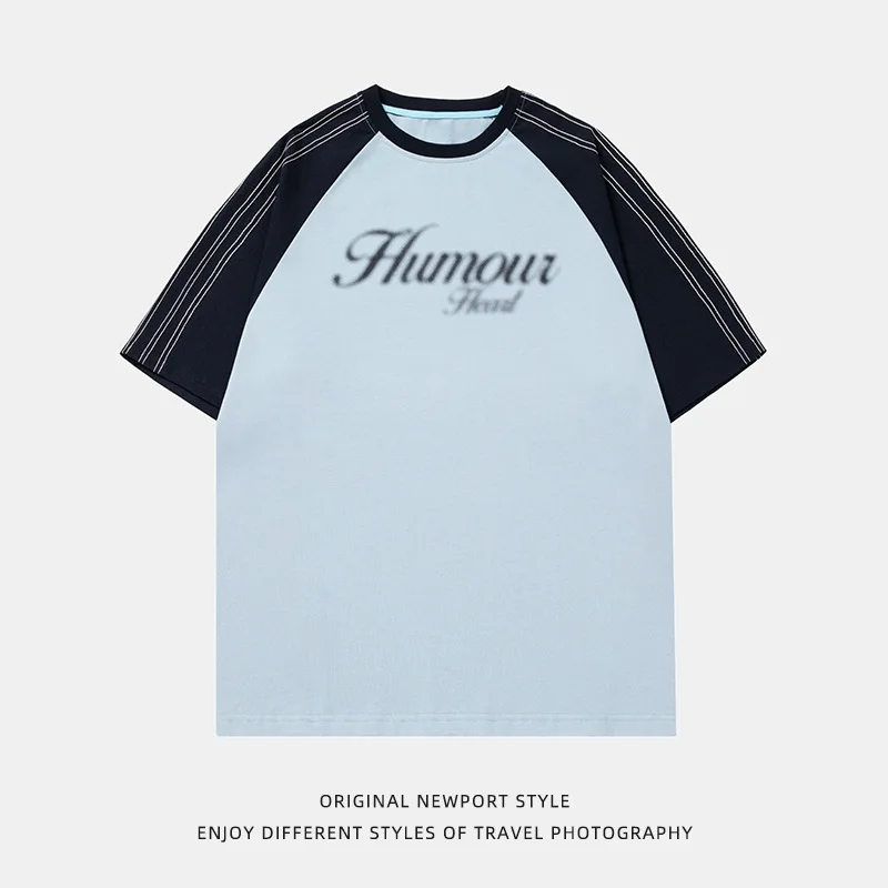 American Retro Color-Block Stitched Raglan Sleeve Short Sleeve T-Shirt for Men Summer Casual Loose New Fuzzy Dot Print 180g