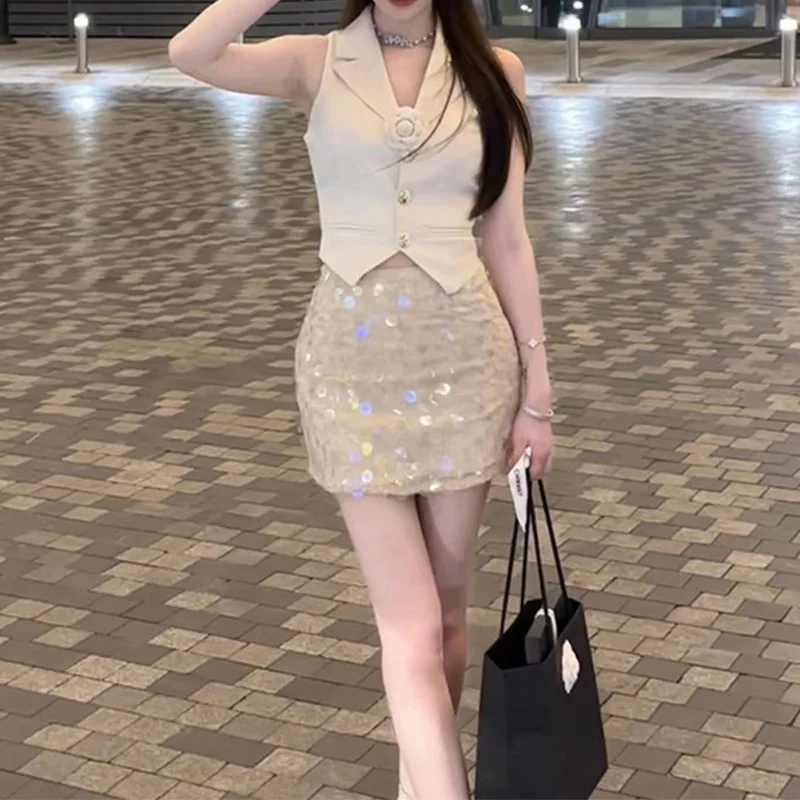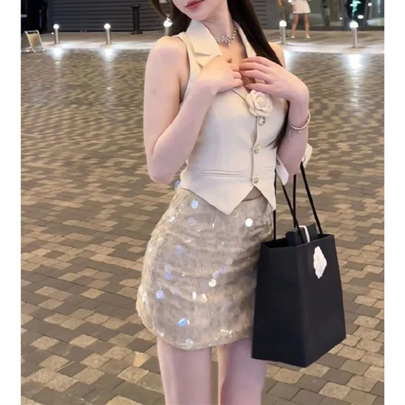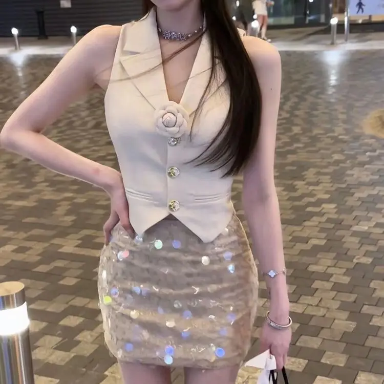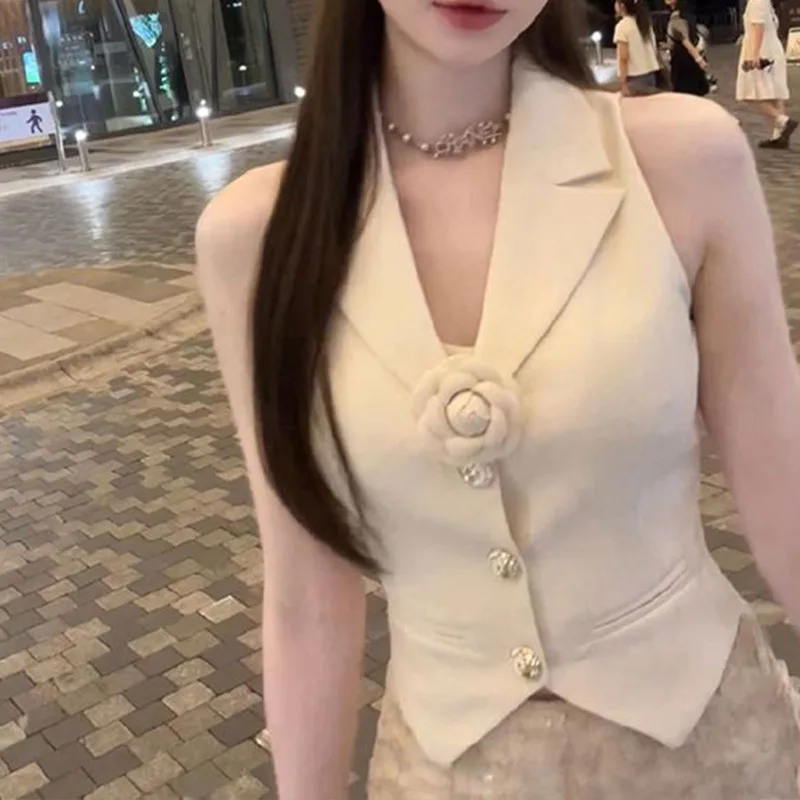 2025 Summer Elegant Sleeveless Top for Women White Small Suit Vest with Sweet Spicy French Style Waterproof Casual Outer Wear