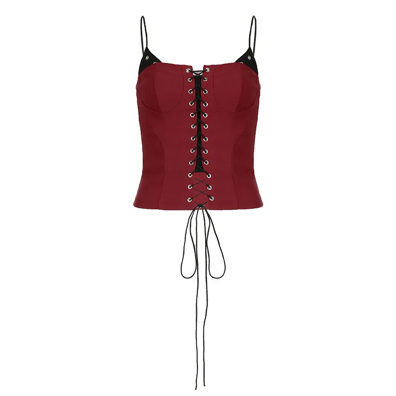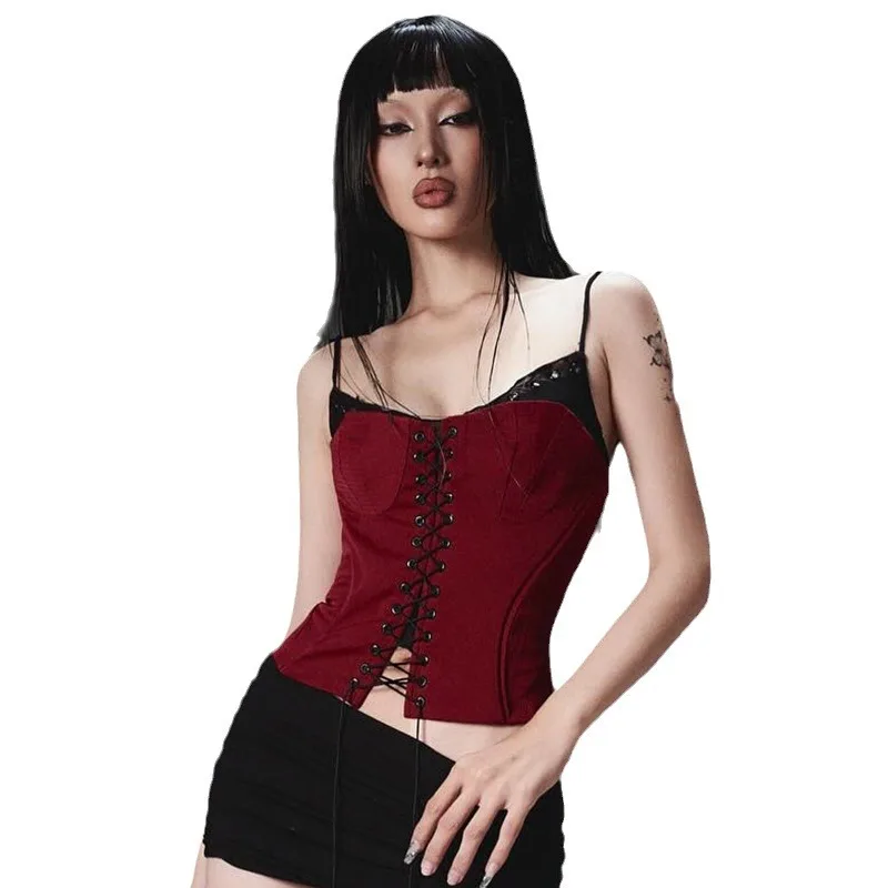 Contrast Color Splicing Small Suspender Chest Straps Irregular Waist Slimming Short Top